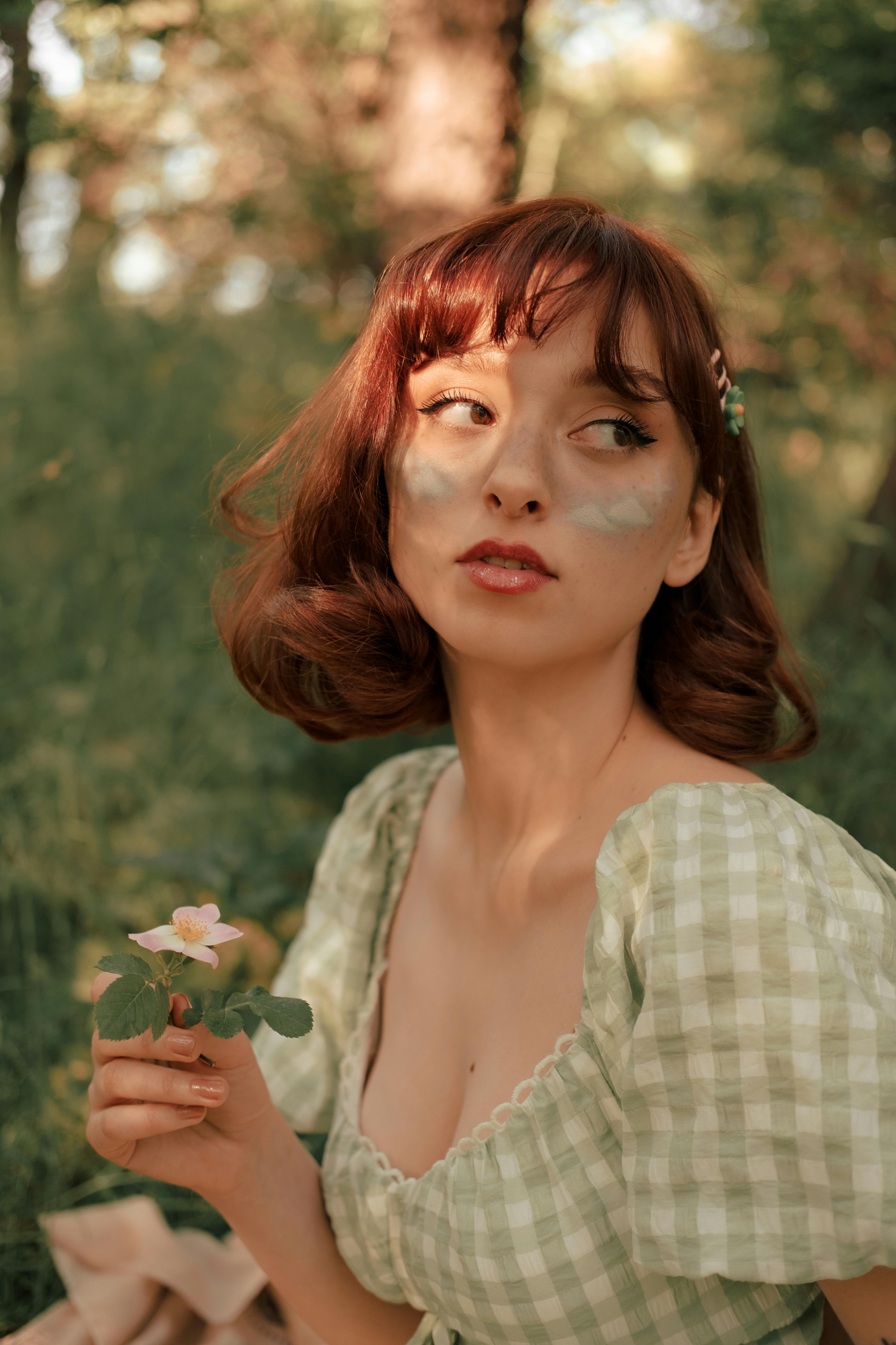 Bangs can completely transform a look, especially brow-length bangs in the middle part with outer layers that fall to the cheekbones. The layered haircut makes these bangs more casual and natural than a sharp and strict cut.